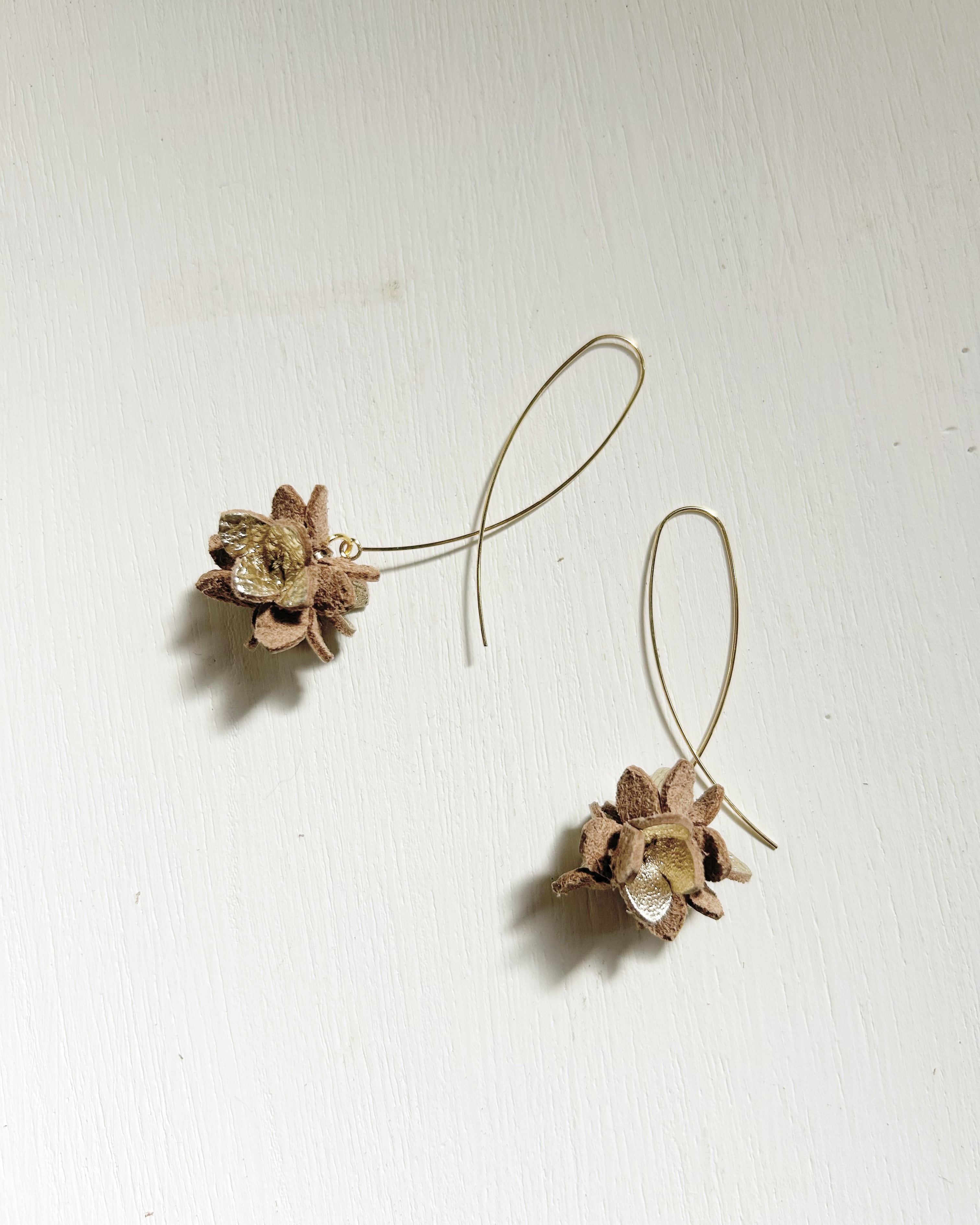 華やかさとスタイリッシュさを兼ね備えた、プチたんぽぽのピアスが登場しました。ワイヤーの先には、ゴールドやシルバーカラーのレザーフラワーがついており、春らしい華やかさを演出してくれます。パーティやイベントなどの華やかな場面でのアクセントにも最適です。